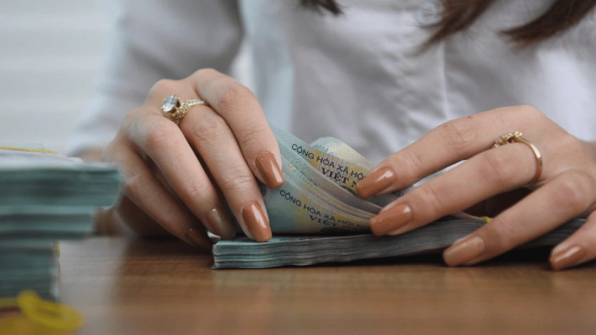 Nhân viên một ngân hàng tại Hà Nội đang đếm tiền. Ảnh: Giang Huy