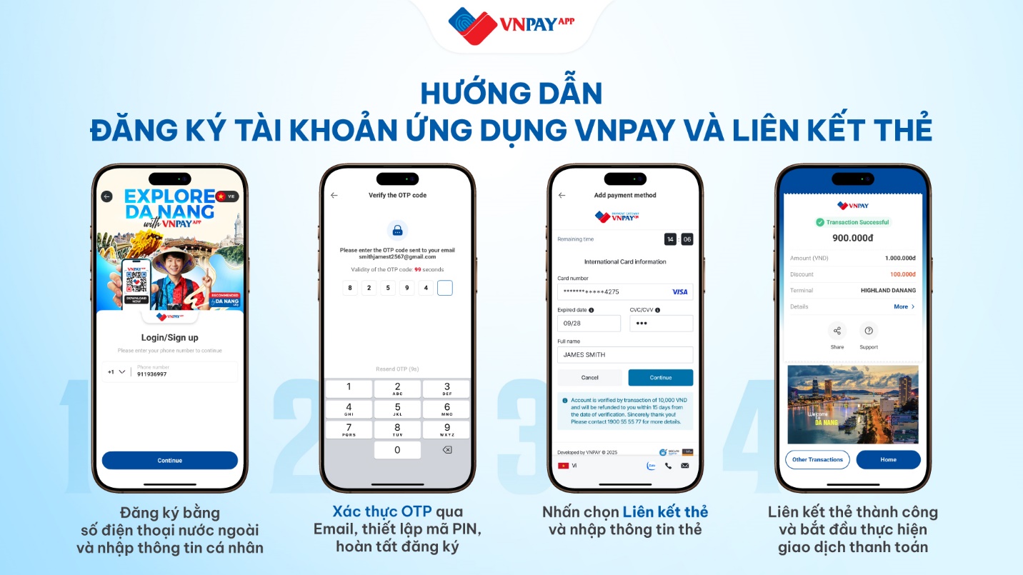Thông qua ứng dụng, du khách nước ngoài có thể dễ dàng liên kết thẻ thanh toán quốc tế của mình vào tài khoản và thanh toán qua mã VNPAY-QR tại hàng nghìn điểm chấp nhận thanh toán.